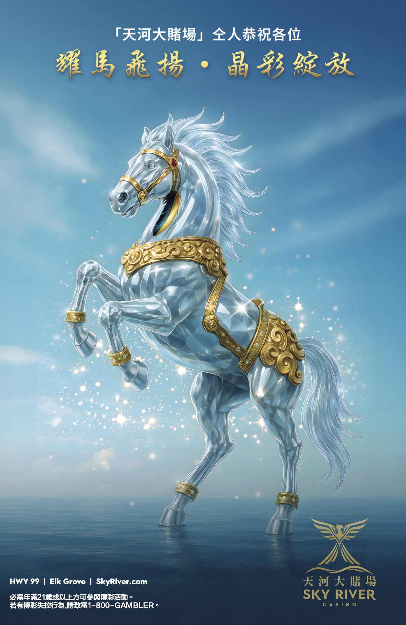 「天河大賭場」榮幸地連續第四年參加3 月 7 日(星期六)舉行的三藩市農曆新年花車大巡遊。為慶祝馬年,「天河大賭場」將展出一匹特別定製的晶彩駿馬花車,並誠邀梁舘白鶴龍獅團與花車同行,並以「天河大賭場」其專屬設計的醒獅作表演,為新的一年,帶領大家走向更晶彩、更歡樂。